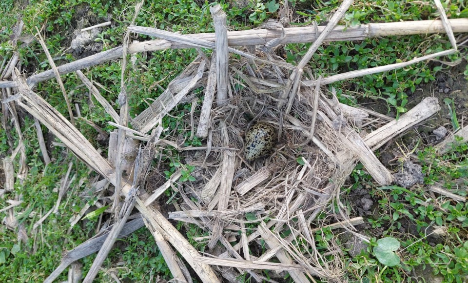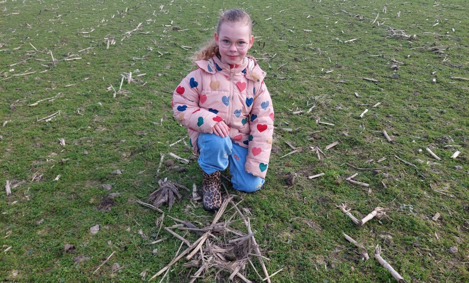 Om 15.17 uur vanmiddag belde een trotse vader Jan Willem met het mooie nieuws: “Mien dochter het ’n ei fûn.” Toen Yuna vanmiddag uit school kwam, stond ze al te trappelen om samen met haar vader het weiland in te gaan. Op een maisperceel buiten Tjerkwerd zagen zij meerdere kievitpaartjes die al verder leken te zijn dan elders. Eén paartje gedroeg zich zó verdacht, dat er wel eens een ei kon liggen. En al snel was het raak: Yuna vond een prachtig nestje met daarin een vers eitje.